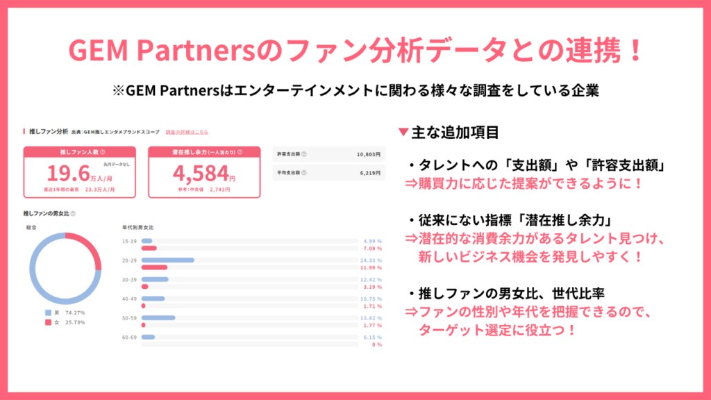 第2弾はGEM Partners(以下GEM)のファン分析データとの連携!
